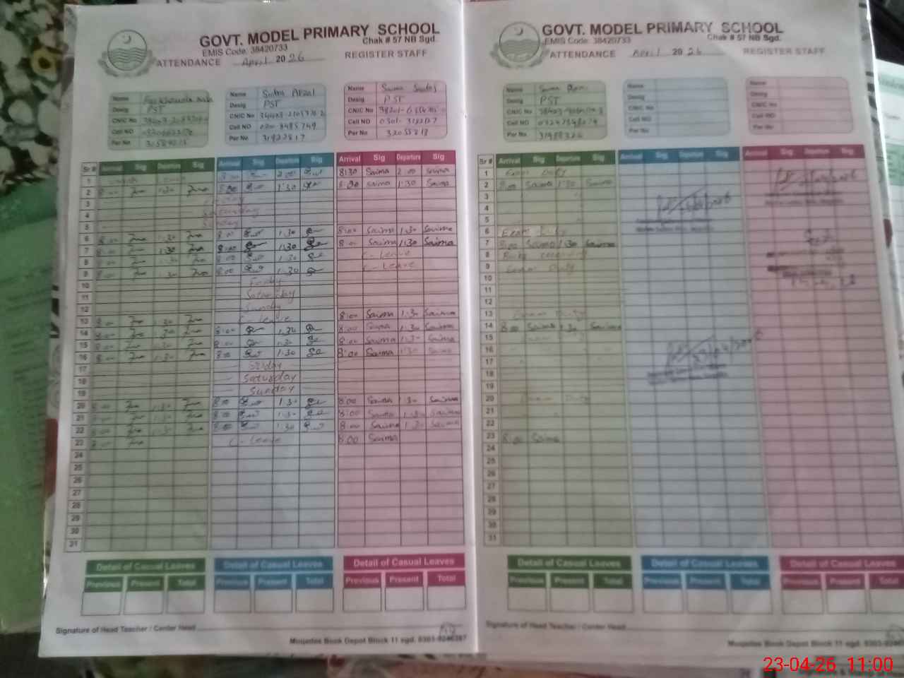 | Name: FA**** NI**** Designation: (School Headmaster's/Headmistress's) PST Phone/Cell Number: 03**** |
