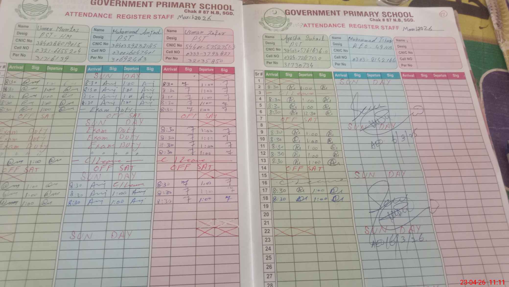 | Name: Um**** Mu**** Designation: (School Headmaster's/Headmistress's) PST Phone/Cell Number: 03**** |
