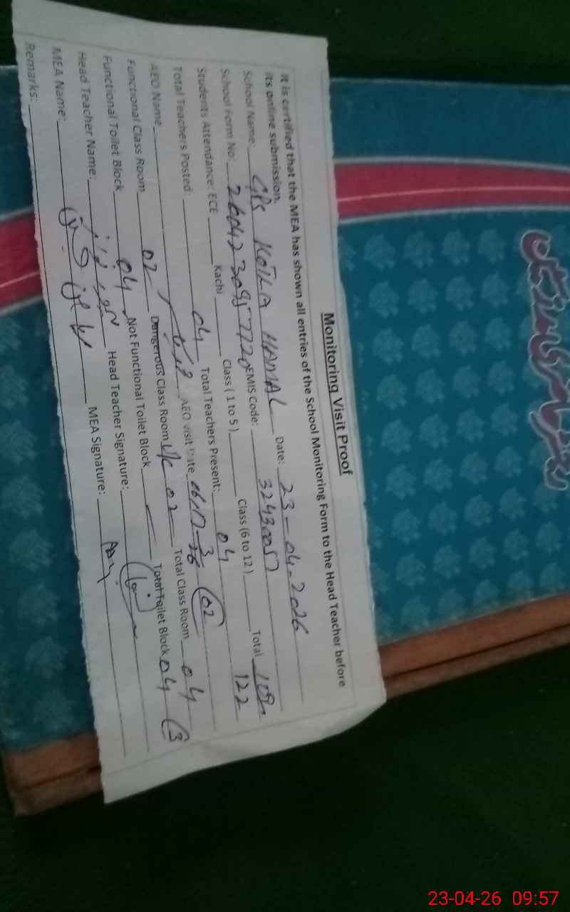 | EMIS Code: 32430057 | Name of School: GPS KOTLA HAMAL | |||