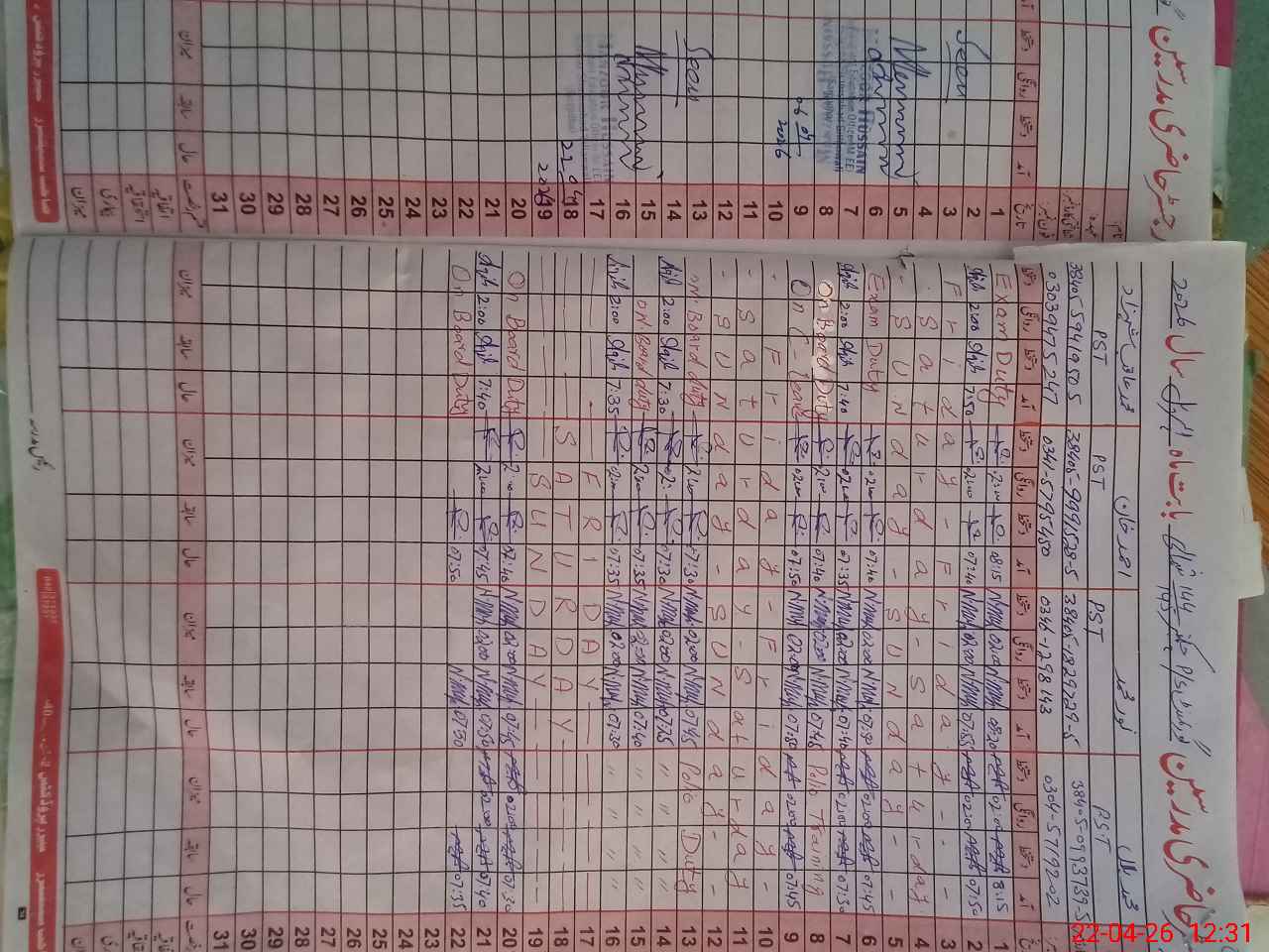 | Leave | Duty | Absent | Maternity | Medical | Ex- Pak |