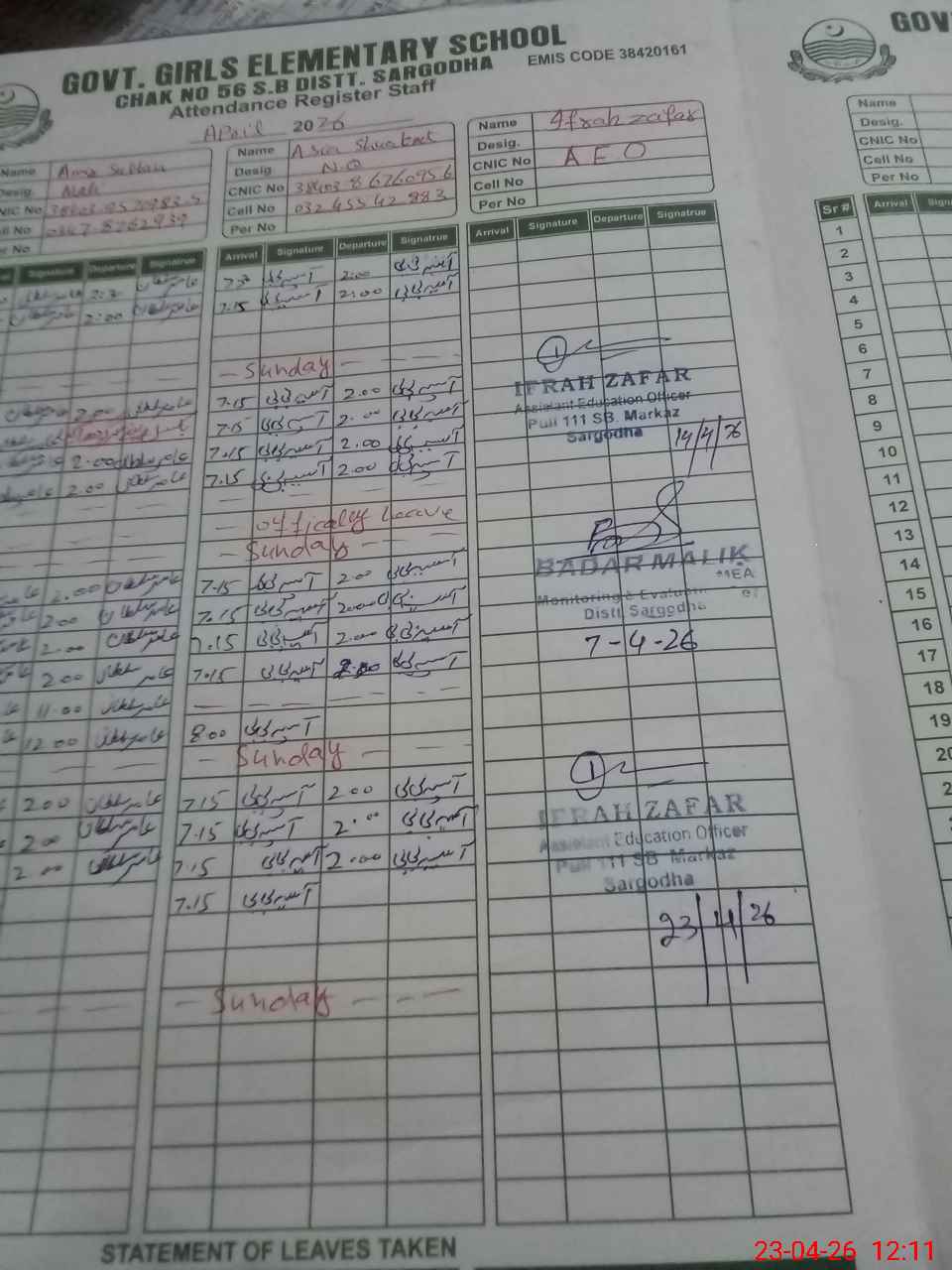 | No CNIC Found | No Name Found | No Designation Found | No R/C Found | 0 | 0 | 0 | 0 | 0 | 0 | 0 | 0 | 0 | No Remarks Found |