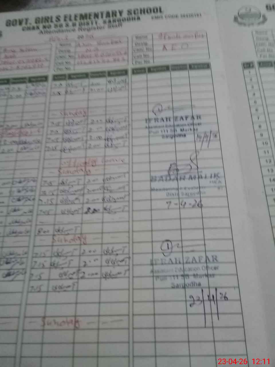 | Attendance Register | Head Teacher | MEA with School | Visit Proof |