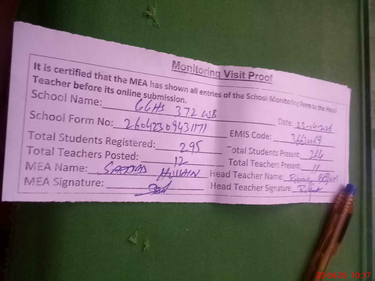 | EMIS Code: 36630069 | Name of School: GGHS 372/WB | |||