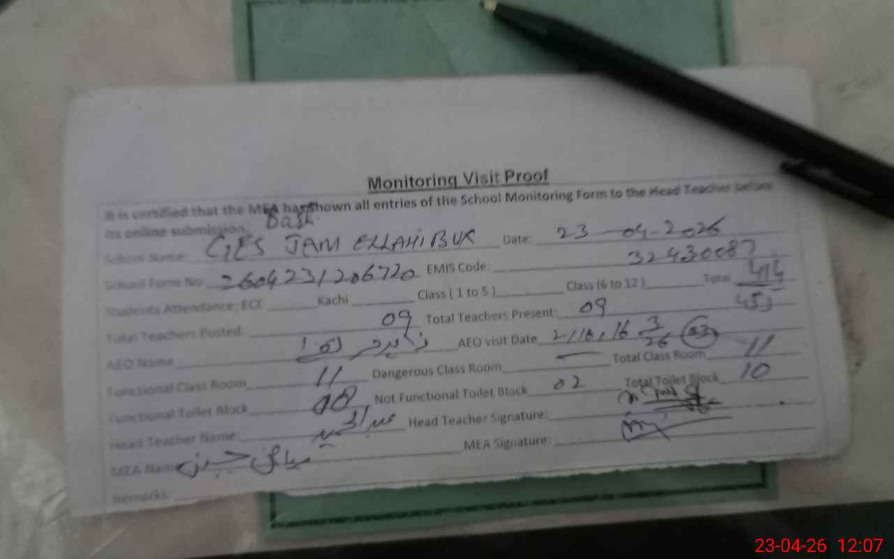 | EMIS Code: 32430087 | Name of School: GES BASTI JAM ELLAHI BUX CHACHAR | |||
