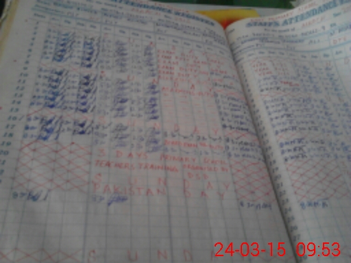 | Total no. of Classrooms: 9 No. of Classrooms Used for Teaching: 6 No. of Classrooms Storing Old Furniture, FTBs, etc: 0Comments if Any: Teacher M Aslam is on Exam duty and marked present 01 room used for office 02 rooms are vacent |