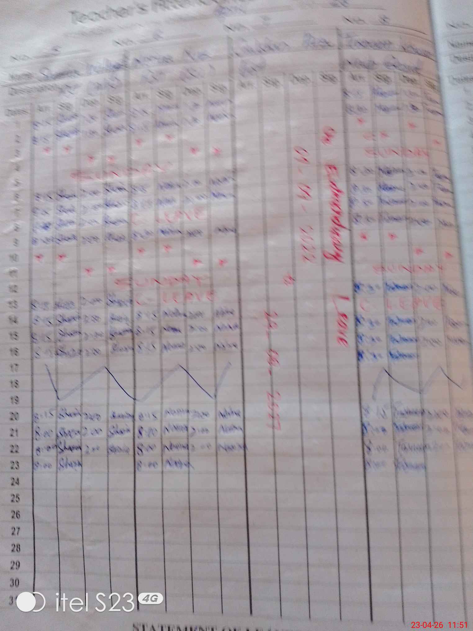 Leave Type | Remarks for today (Leave,Training, Exam,Absent,Late, Other duty) |