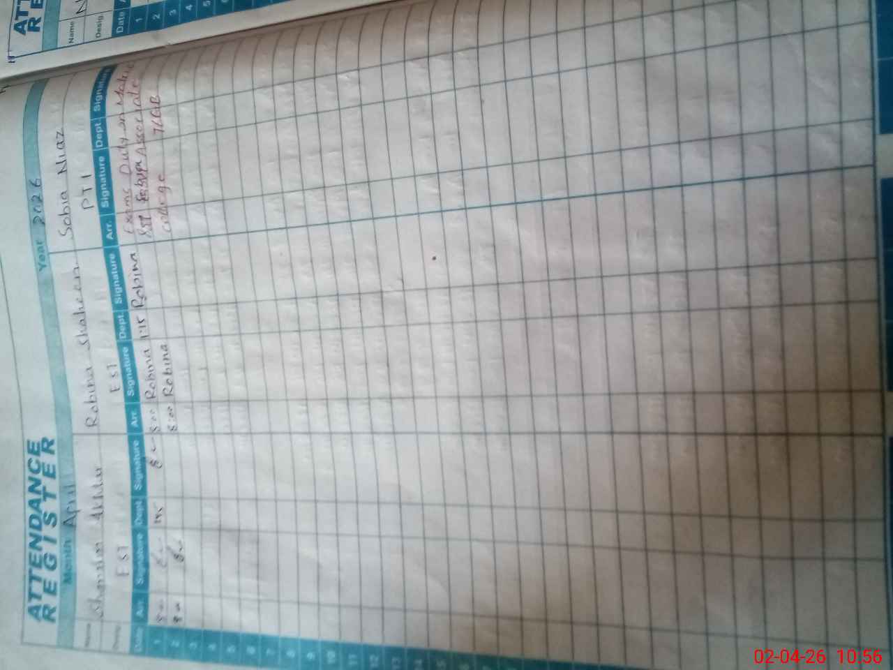 | 33**** | Na**** Ba**** | EST Science | Regular | 0 | 0 | 0 | 0 | 0 | 0 | 0 | 0 | 0 | Casual |