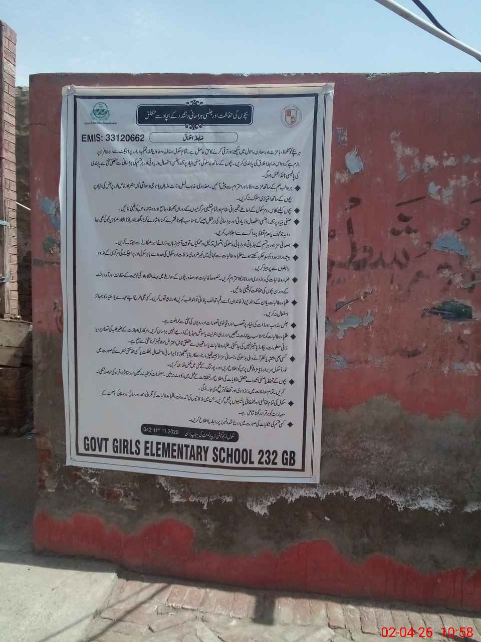 | EMIS Code: 33120662 | Name of School: GGES CHAK 232 GB SATIANA | |||
