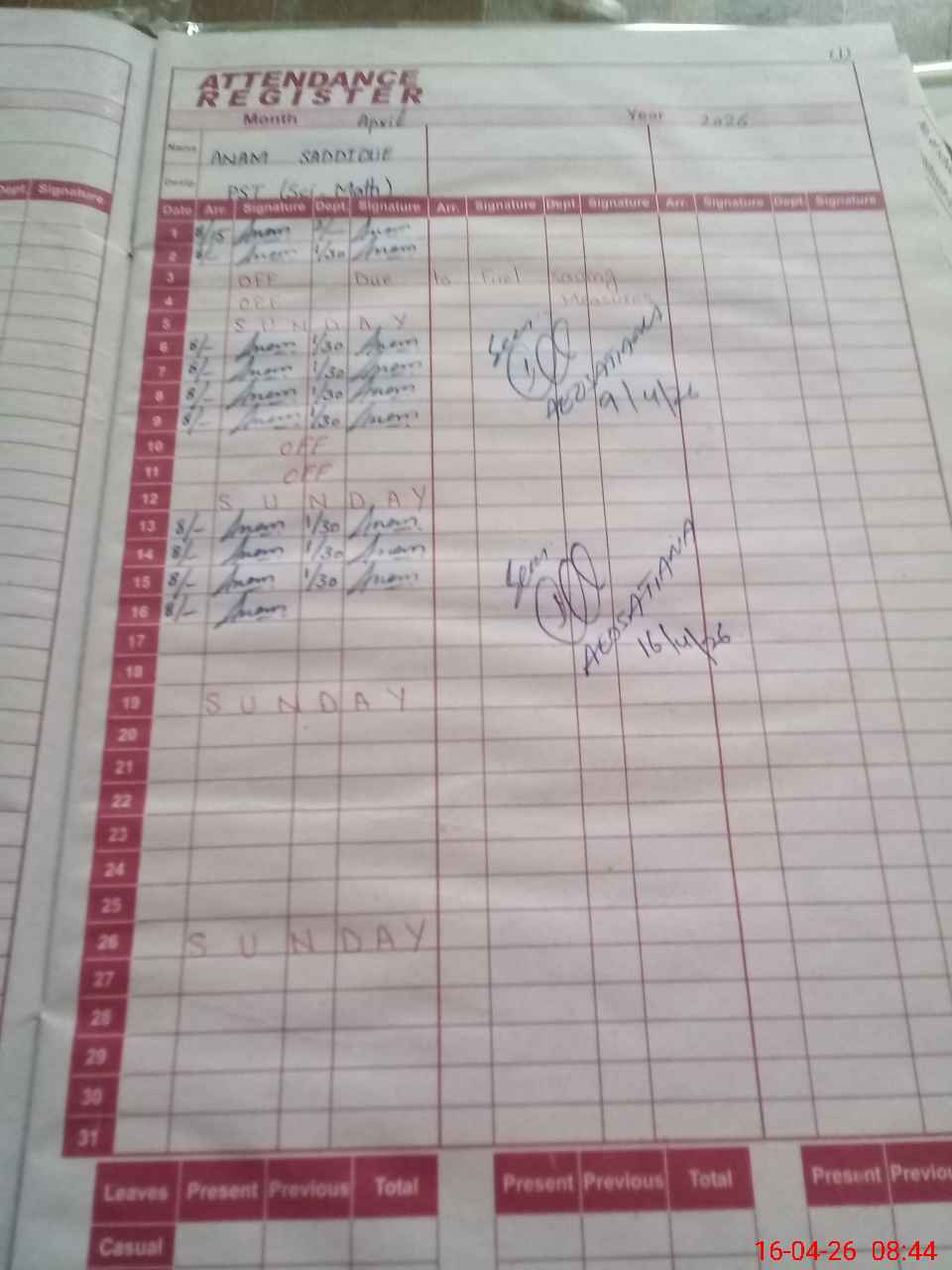 | Monitoring Date: 16-04-2026 | Start Time: 16-04-2026 08:11 AM | End Time: 16-04-2026 08:47 AM | Name of MEA: IQ**** MA**** | |