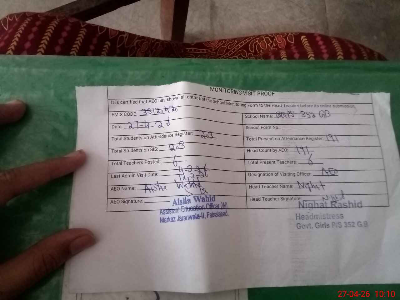 | EMIS Code: 33120420 | Name of School: GGPS CHAK 352 GB LUNDIANWALA | |||