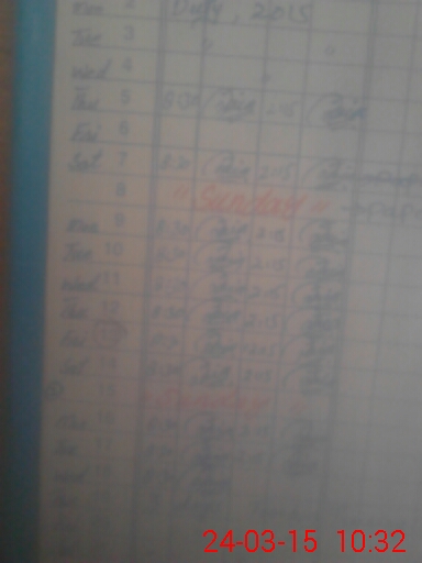 | Monitoring Date: 24-03-2015 | Start Time: 24-03-2015 10:18 AM | End Time: 24-03-2015 10:38 AM | Name of MEA: Mu**** Ay**** | |