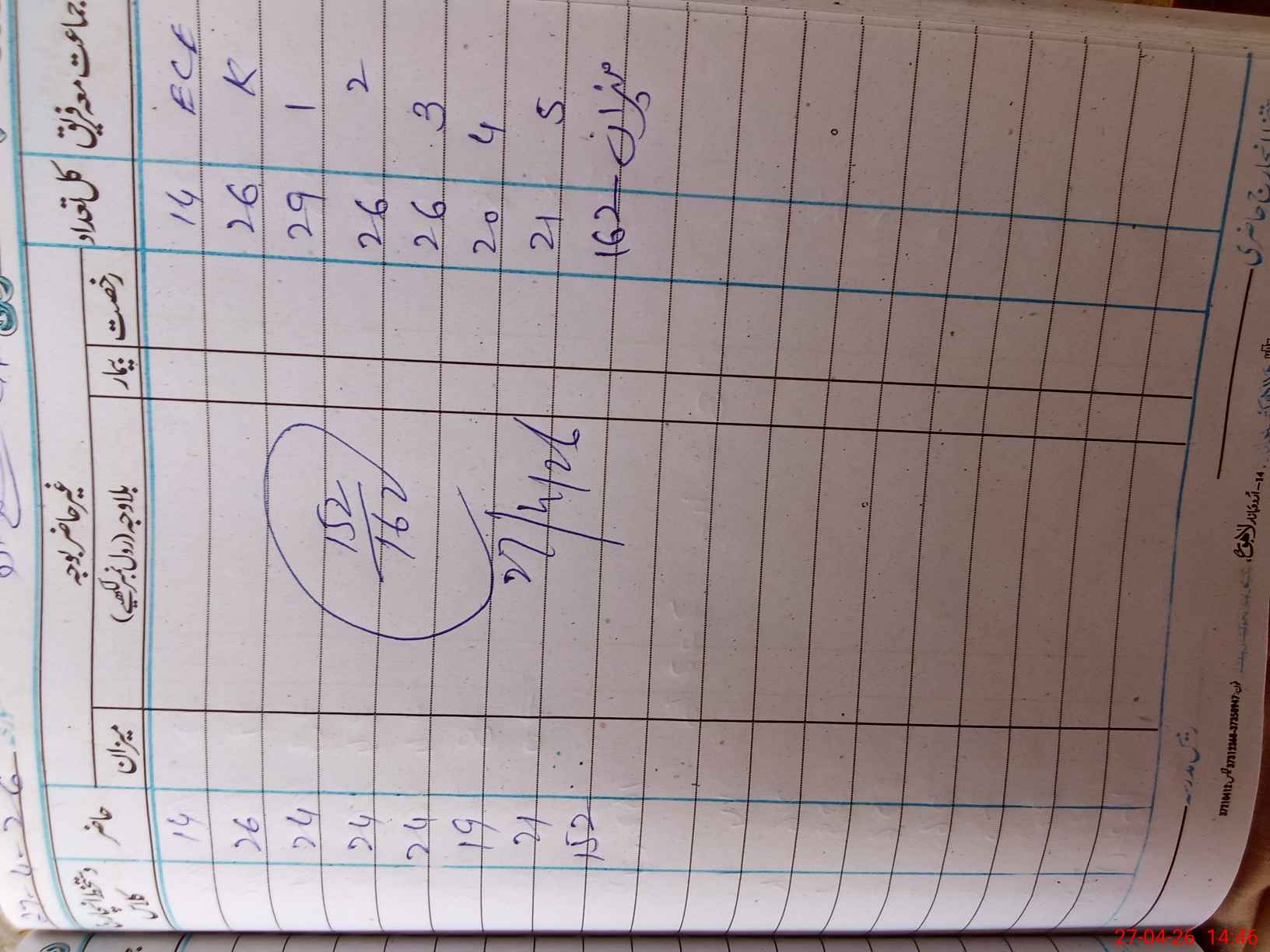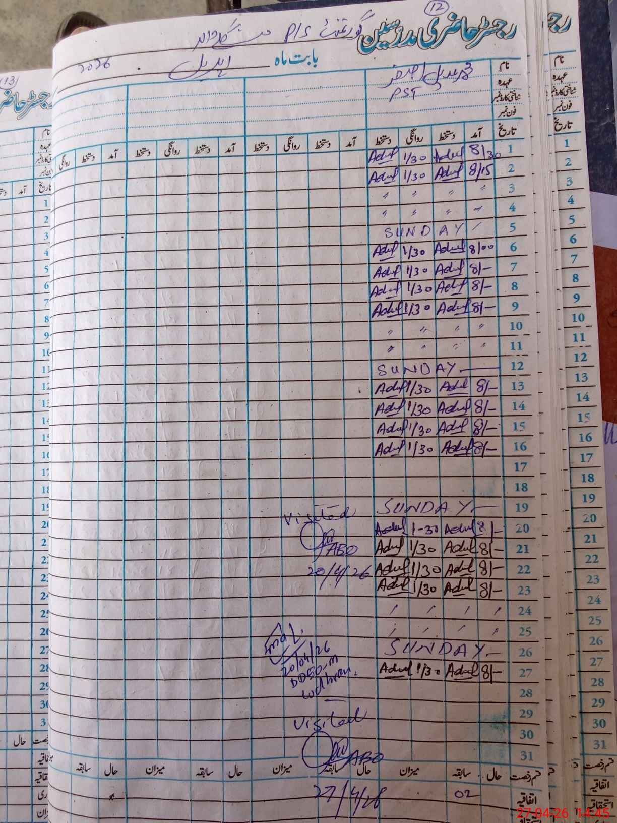 | CNIC | Full Name | Designation | R/C | Absence During Last Calender Month |