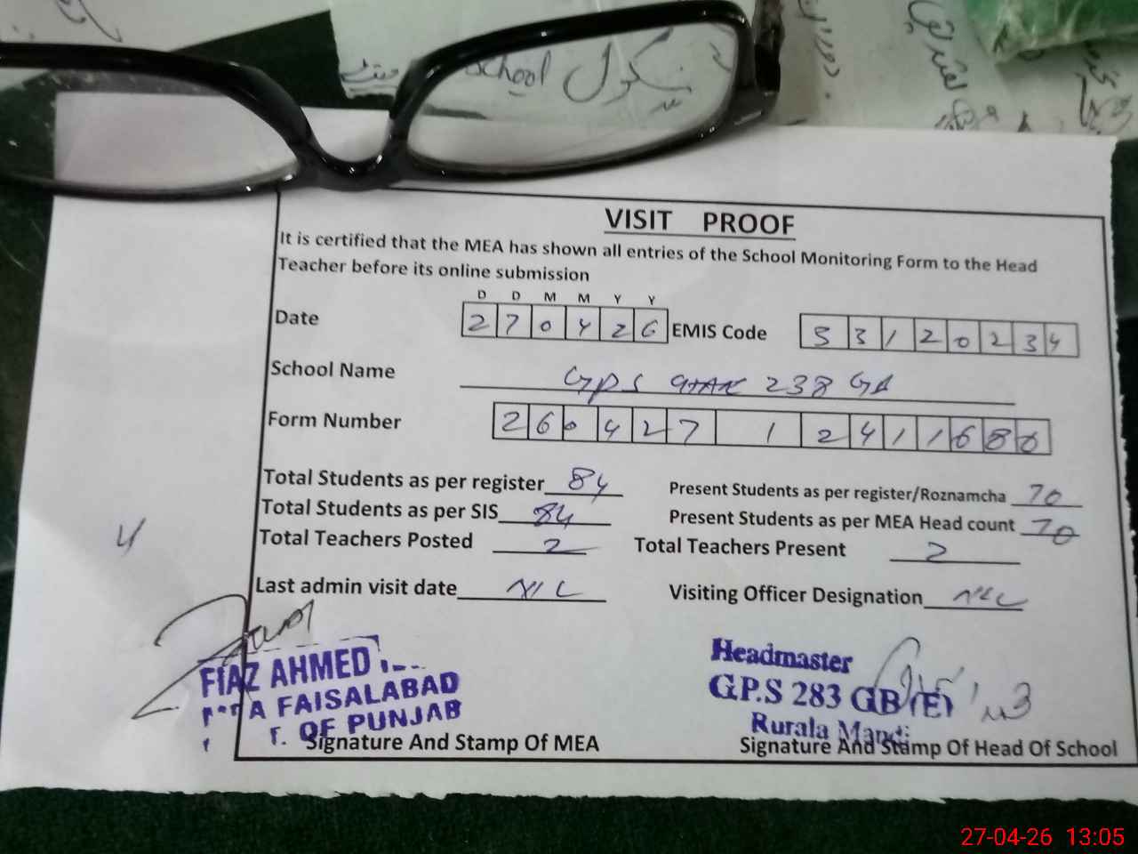 | EMIS Code: 33120234 | Name of School: GPS CHAK 283 GB | |||