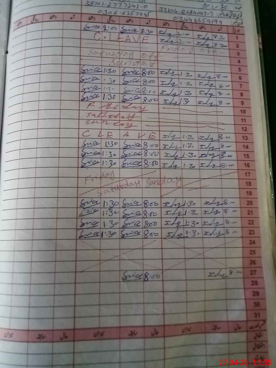 | Leave | Duty | Absent | Maternity | Medical | Ex- Pak |