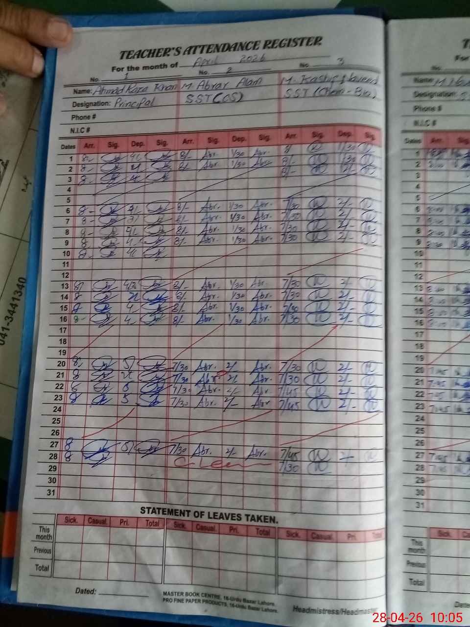 | Name: AH**** RA**** KH**** Designation: (School Headmaster's/Headmistress's) SST (GENERAL) Phone/Cell Number: 03**** |