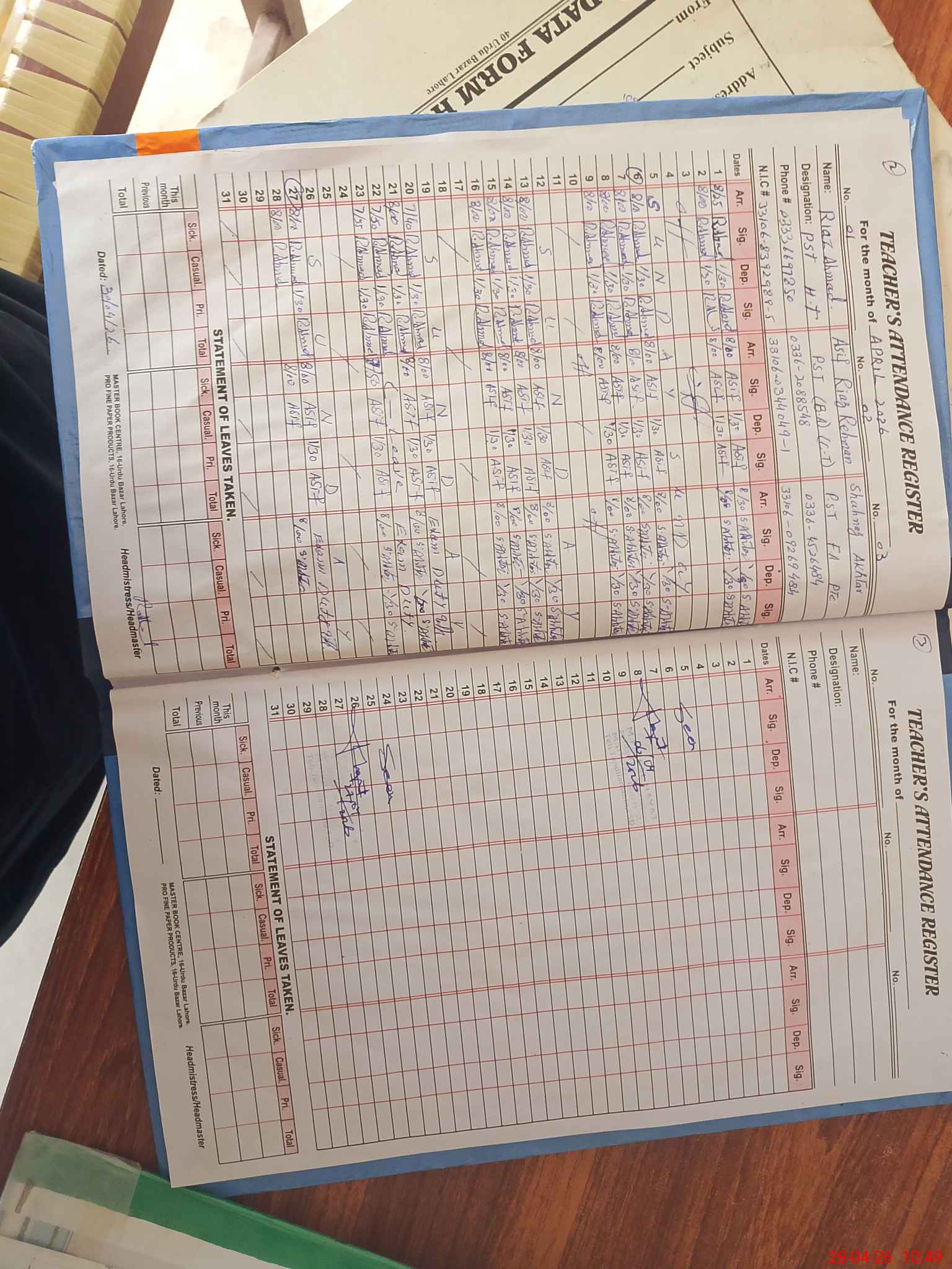 | Name: RI**** AH**** Designation: (School Headmaster's/Headmistress's) PST Phone/Cell Number: 03**** |