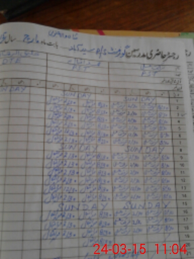 | CNIC | Full Name | Designation | R/C | Absence During Last Calender Month |