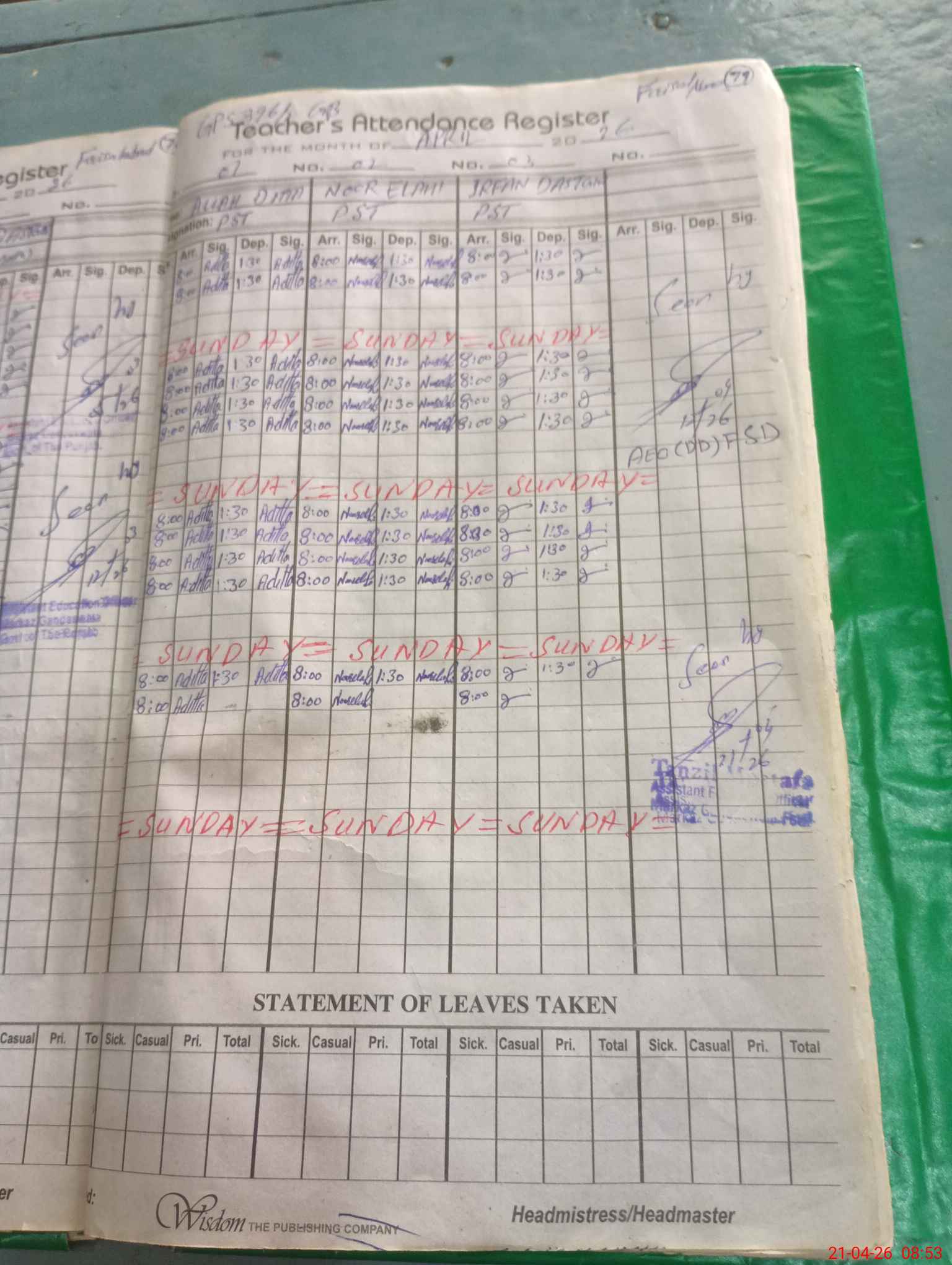 | Name: AL**** DI**** Designation: (School Headmaster's/Headmistress's) PST Phone/Cell Number: 03**** |