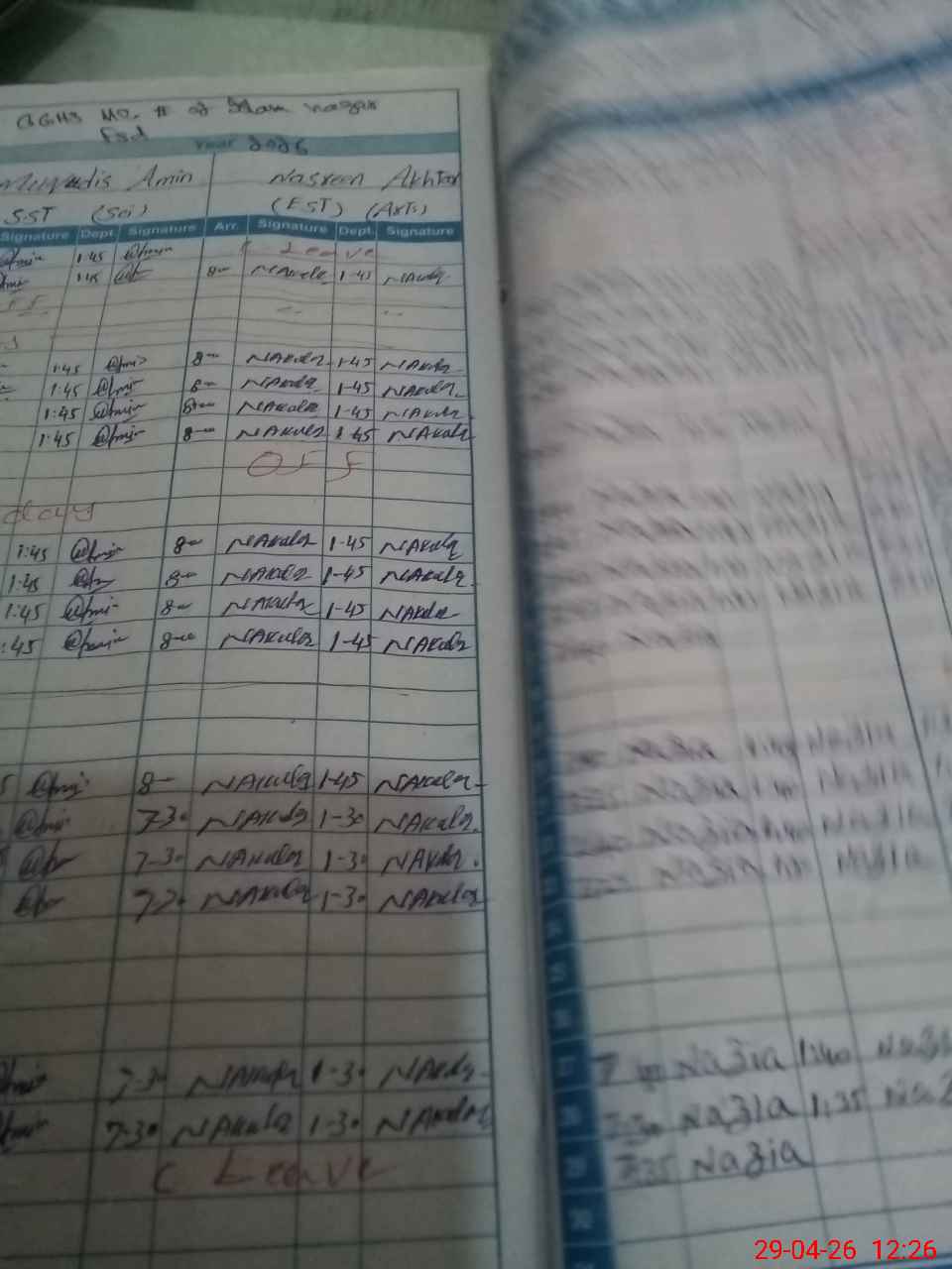 | Leave | Duty | Absent | Maternity | Medical | Ex- Pak |