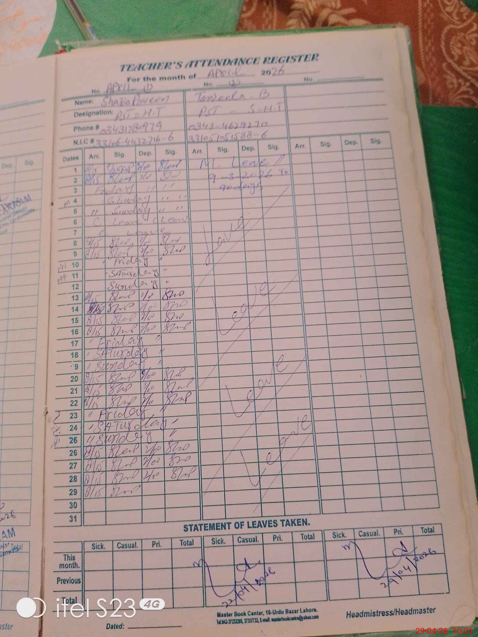 | Name: SH**** PE**** Designation: (School Headmaster's/Headmistress's) PST Phone/Cell Number: 03**** |
