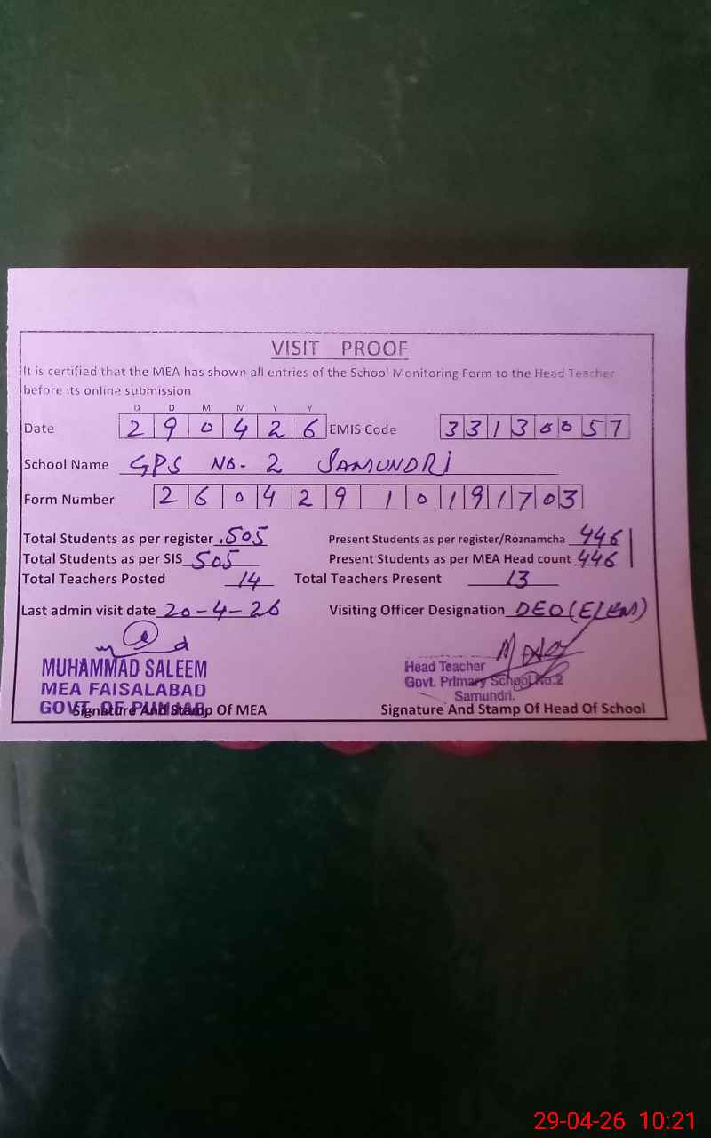 | EMIS Code: 33130057 | Name of School: GPS NO. 2 SAMUNDRI | |||