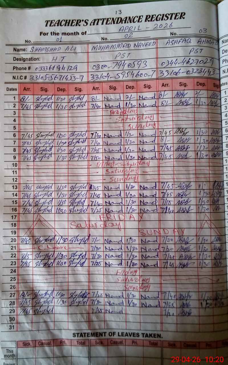 | Name: SH**** AL**** Designation: (School Headmaster's/Headmistress's) PST Phone/Cell Number: 03**** |