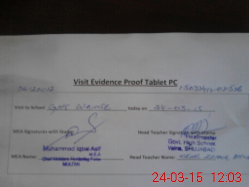 | Attendance Register | Head Teacher | MEA with School | Visit Proof |