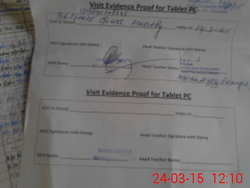 | Attendance Register | Head Teacher | MEA with School | Visit Proof |