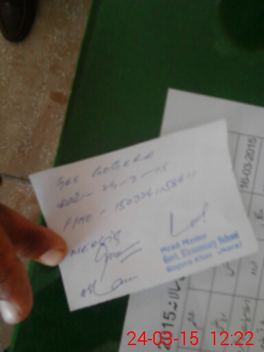 | Name: Gh**** Aw**** Designation: (School Headmaster's/Headmistress's) SST Phone/Cell Number: 03**** |