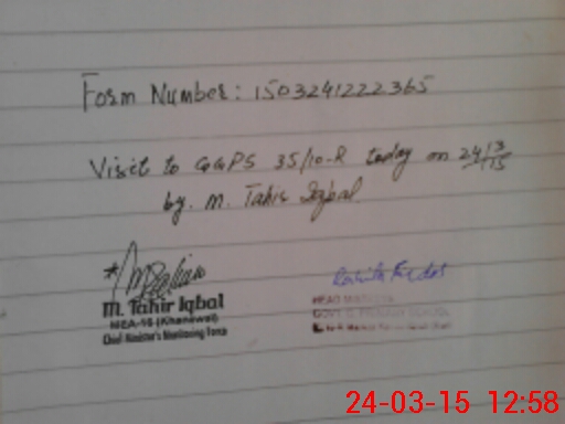 | Name: Me**** Ir**** Designation: (School Headmaster's/Headmistress's) PST Phone/Cell Number: 03**** |