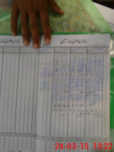 | CNIC | Full Name | Designation | R/C | Absence During Last Calender Month |