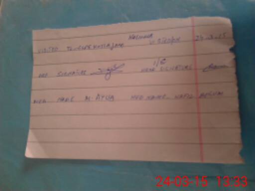 | School Visited by School Health & Nutrition Supervisor (No. of Visits) | 1 | Name1: | NAJIB ULLAH | Name2: | O |