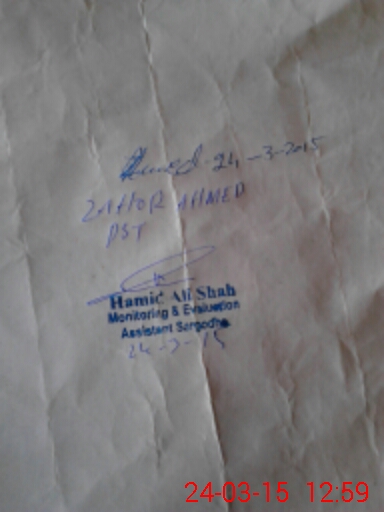 | Name: SA**** URRE**** Designation: (School Headmaster's/Headmistress's) PST Phone/Cell Number: 03**** |