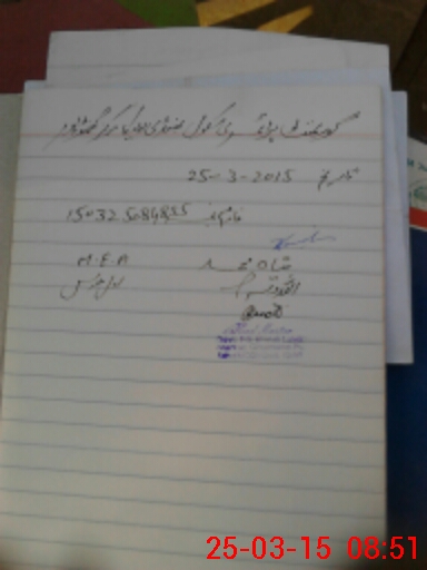 | Monitoring Date: 25-03-2015 | Start Time: 25-03-2015 08:36 AM | End Time: 25-03-2015 08:52 AM | Name of MEA: Sh**** Mu**** | |