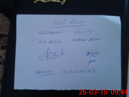 | Monitoring Date: 25-03-2015 | Start Time: 25-03-2015 09:27 AM | End Time: 25-03-2015 09:45 AM | Name of MEA: M.Af**** (R**** | |