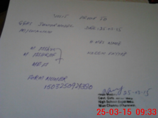 | Name: Fo**** Zi**** Designation: (School Headmaster's/Headmistress's) Sr HM Phone/Cell Number: 03**** |