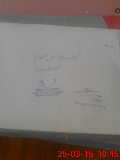 | Name: SA**** HU**** Designation: (School Headmaster's/Headmistress's) HEADMASTER Phone/Cell Number: 03**** |