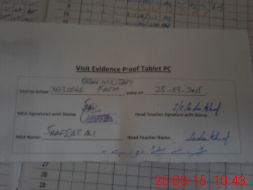 | Attendance Register | Head Teacher | MEA with School | Visit Proof |