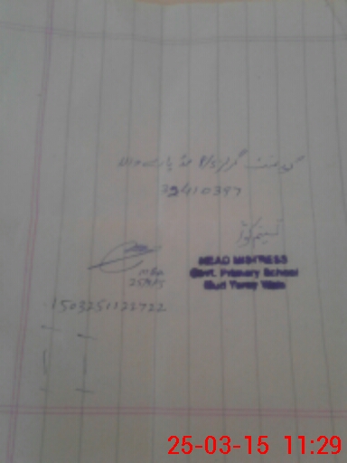 | Name: RE**** BI**** Designation: (School Headmaster's/Headmistress's) PST Phone/Cell Number: 03**** |