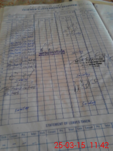 | CNIC | Full Name | Designation | R/C | Absence During Last Calender Month |