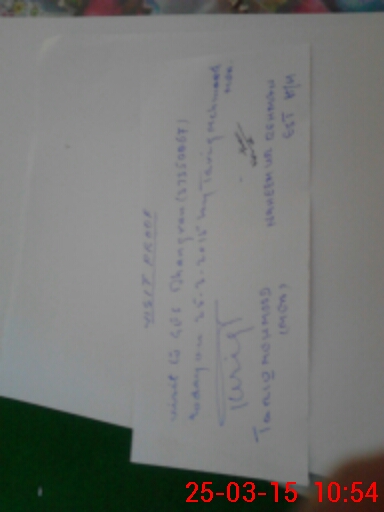 | Monitoring Date: 25-03-2015 | Start Time: 25-03-2015 10:30 AM | End Time: 25-03-2015 10:54 AM | Name of MEA: Ta**** Me**** (r**** | |