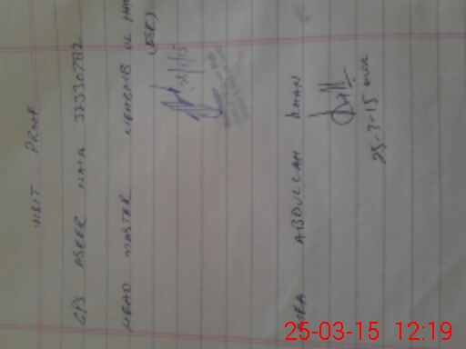 | Monitoring Date: 25-03-2015 | Start Time: 25-03-2015 12:08 PM | End Time: 25-03-2015 12:21 PM | Name of MEA: Ab**** Kh**** | |