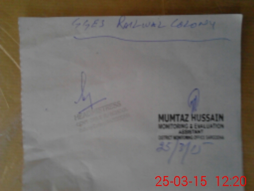 | EMIS Code: 38420212 | Name of School: GGHS RAILWAY COLONY SARGODHA | |||