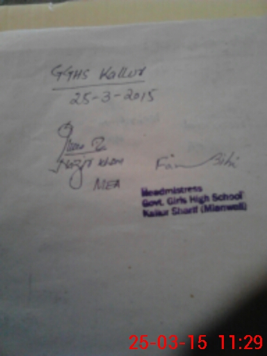 | EMIS Code: 38310054 | Name of School: GGHS KALUR SHAREEF | |||