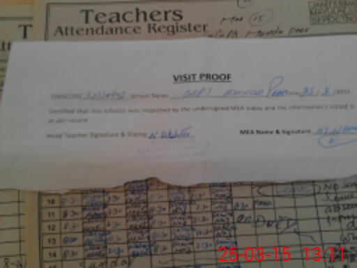 | Attendance Register | Head Teacher | MEA with School | Visit Proof |