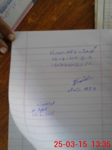 | Monitoring Date: 25-03-2015 | Start Time: 25-03-2015 01:22 PM | End Time: 25-03-2015 01:35 PM | Name of MEA: Sh**** Mu**** | |