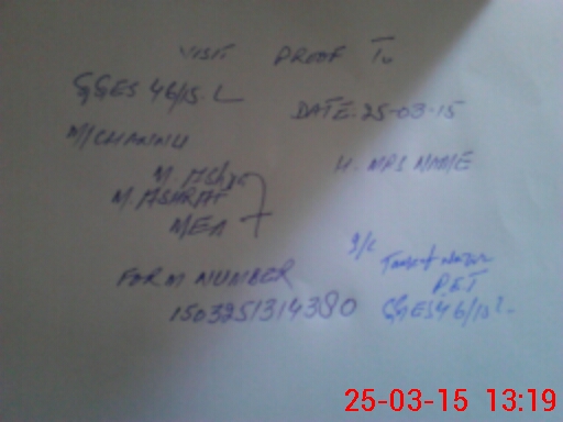 | Monitoring Date: 25-03-2015 | Start Time: 25-03-2015 12:48 PM | End Time: 25-03-2015 01:50 PM | Name of MEA: MU**** AS**** | |
