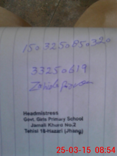 | Name: Sh**** Mu**** Designation: (School Headmaster's/Headmistress's) ESE Phone/Cell Number: 03**** |