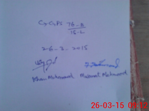 | Monitoring Date: 26-03-2015 | Start Time: 26-03-2015 08:48 AM | End Time: 26-03-2015 09:13 AM | Name of MEA: Kh**** Mu**** (S**** 05**** | |