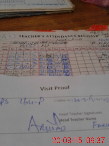 | Attendance Register | Head Teacher | MEA with School | Visit Proof |